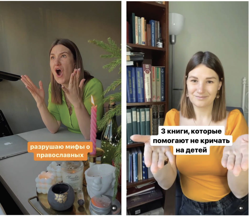 Both she and her husband (who is also one of the most popular priest bloggers on the Russian internet, according to the Association of Bloggers and Agencies) have been talking about Orthodoxy on social media since 2015. Alina still has an Instagram page with 215, 000 subscribers, but in 2021 she recognized TikTok’s promise, since “that’s where all the young people are,” and she started her own account.