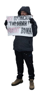 “What bothered me most of all,” Kunitsky recalled, “was that they brought Ukrainian children on to the stage and talked about how happy the children were. This was a nightmare, like dancing on someone’s grave.” That very evening, Ivan made a sign saying “No to Putin’s tyranny! No more wars.” The next day, February 23, he went to the center of Omsk and held up his sign in a one-man protest. Within half an hour, two police officers, a man and a woman, approached him and asked him to follow them. They took Ivan to the police station. They left him waiting for an hour, and then the interrogation began.