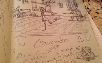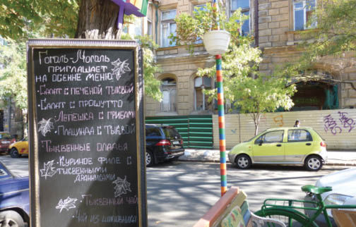 Not far from the Literary Museum, a visitor can find Gogol Street and a trendy restaurant named “Gogol-Mogol.” Inside, the tablecloths and curtains look like they were borrowed from a nineteenth-century drawing room, the bill arrives folded inside the pages of a book, and customers are encouraged to draw on the menus. Paintings of Gogol decorate the walls.