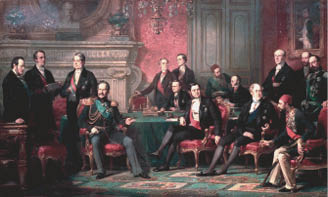 In february 1856, representatives of most major (and some minor) European powers gathered in Paris: Russia, France, Great Britain, Austria, Prussia, the Ottoman Empire, and Sardinia. The main purpose of the Congress of Paris was to bring an end to the Crimean War, but its ramifications went much further. It put in place a new system of international relations.