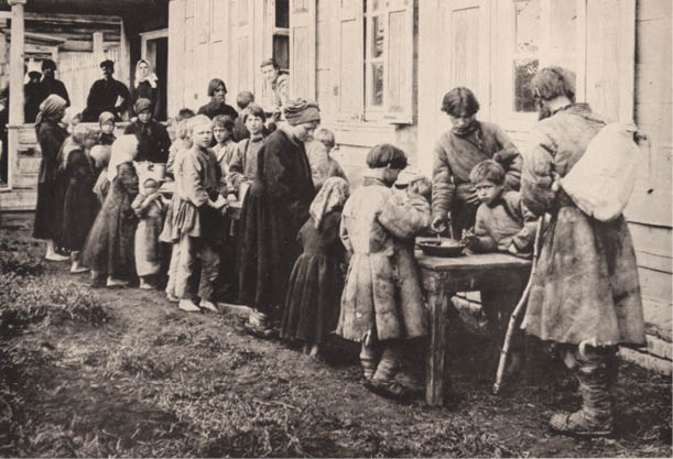 He took pictures of abandoned, roofless houses; the thatch had been fed to livestock, since the grass in the fields had been burnt by the sun. He entered shelters for cholera patients and homes where entire families lay together in typhoid fever-induced delirium. He also photographed those who came to help the dying peasants: nurses and doctors, teachers, local officials, and volunteers operating free soup kitchens.