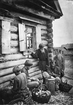 It was in these circumstances that Dmitriev set off on his photo shoot, having obtained written permission from provincial authorities. He rode through empty and destitute rural areas, taking photos of darkened villages, empty fields, sooty hovels, and peasants blackened by hunger and deprivation.