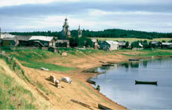 Upon arrival in Mezen, I was escorted by the major who headed the local police, and, after due formalities, was driven in a brand-new Uazik to the village of Dorogorskoye, across the Mezen River from Kimzha. There I met the head of the local village council, Alexei Zhitov, who made it clear that he pretty much controlled what happened in Kimzha. Not an easy job, as it happens, and the silting of the Mezen River has made it much harder. As I later saw, simply getting a small barge of fuel oil over to the other side was a very difficult, even dangerous, operation – and without oil the village of Kimzha has no electricity. It came as no surprise to learn that Zhitov was suffering from a serious ulcer.