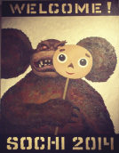 Russian artists have taken up issues plaguing the country – like police and prison violence – and turned them into dystopian posters about the Sochi Winter Olympic Games. The posters, by artist Vasily Slonov, were on display in Novosibirsk. One features five Olympic rings made of barbed wire, another a skier coming face to face with a monstrous, wooly Cheburashka, the symbol of Moscow’s 1980 Olympic Games.