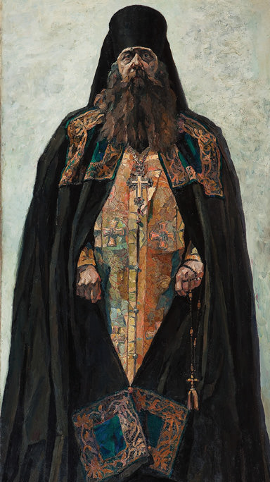 In Korin's Requiem sketches, Pimen looks directly at the viewer, a psychologically penetrating technique the artist borrowed from Repin. Although perestroika was still decades away, Pimen's clear, unwavering gaze seems to hold the spirit of the Church, and perhaps the key to its regeneration.