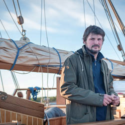 Yevgeny was busy in the workshop. Originally from Moscow, he worked in sales, but always wanted to work with wood. Seven years ago, he asked himself what he was doing with his life, and decided to move to Solovki. He has not looked back. The other 11 shipmates are enthusiasts from all over Russia.