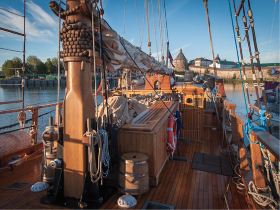 Only one crewmember remained on board. He introduced himself as Yevgeny. I discovered that he was one of the 12 people who had built and now crewed the St. Peter. She had been put to sea before, but only for short trips since her launch in 2013. This time they had been out in the White Sea for two weeks, recreating the route (in reverse) of a journey made by Peter I in 1703, when he accompanied Dutch and English merchant ships around the islands.