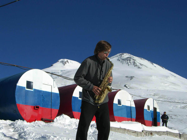 Vladimir Kopylov, 43, has spent more than 20 years in the mountains and has climbed Elbrus more than a hundred times. He welcomed the millennium from the summit, filming the sunrise and sharing it with TV channels around the world. A photographer, guide and author, his most famous Elbrus interaction may actually be playing the saxophone at a higher altitude than any other human being when he played Let My People Go atop Elbrus in August 2003. The achievement put him in the Guinness Book of World Records.