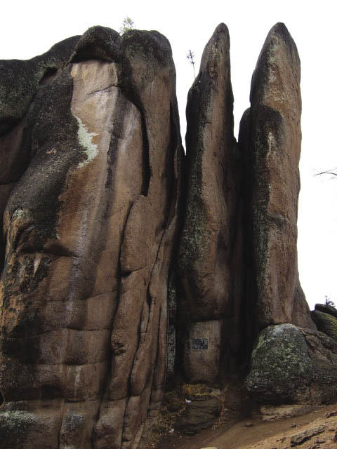 As I attempt to climb the first column, aptly named Pervy (First) Stolb, I find out just how friendly the people are. A man in his mid-50s named Anatoly, who happened to be climbing nearby when he noticed a novice (me) about to take on a fairly challenging route, comes to my aid and shows me a handhold here and a footstep there, guiding me up to the top of the 80-meter high column (640 meters around at its base).