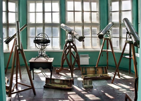 The Academy of Sciences’ first astronomical observatory, an exhibit at the Kunstkamera comprised of the earliest telescopes.