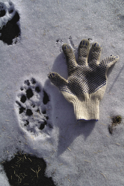 We had walked fully seven kilometers along the opposite side of the river and were wiped out. But then, suddenly, beneath our feet we saw signs that could not be mistaken for anything else. They were paw prints of a wolf!