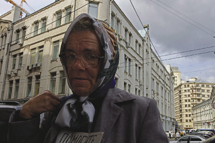 “This was taken on Kuznetsky Most, where the famous Russian saxophonist Alexei Kozlov was playing. The babushka was recalling her younger years as a Moscow hipster, the way they lit things up at Arsenal.”