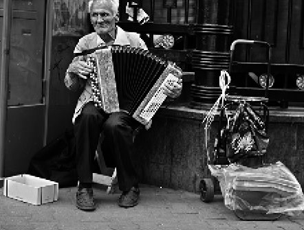“I photographed this old fellow near Arbatskaya metro station, where there is always a crowd of people. The guy was playing some sort of happy melody, while his face remained fixed with an expression that was entirely the opposite, full of despondency and despair.”