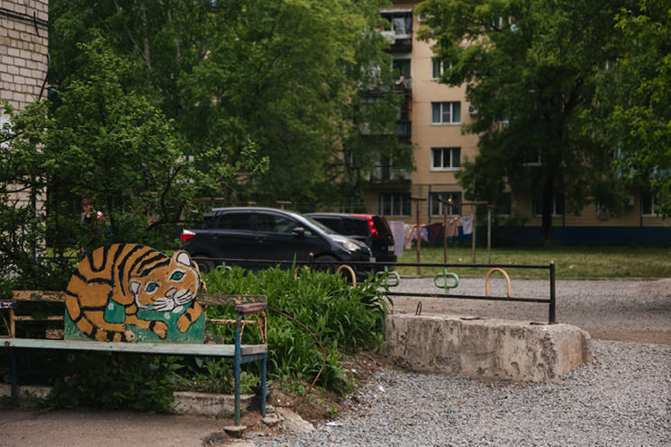 In sunny Luchegorsk, where Kyalundzyuga now lives, images of tigers are everywhere: there’s a bright green topiary in the form of the predator in the central square, a hand-painted image of a tiger decorates a bench, a display promotes the importance of preserving these rare beasts. The Amur tiger may be the pride of the Far East, but in recent years it has also become a major danger: the Red-Listed cats kill dogs, cows, and horses in local villages. And they occasionally attack people.