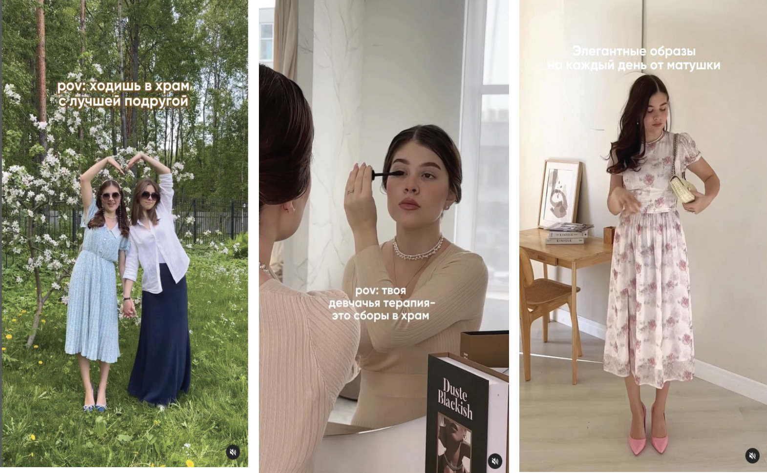 Matushki do take their Wake-Up Selfies in bed, as is customary, but with a newborn baby at their side. One urges her followers to “come along to church,” but first, learn how to fashionably tie your headscarf or adopt Kate Middleton style. “Your girl therapy is getting together in church,” one matushka explains, while applying eyeliner in front of the mirror, with the trendy audio-track “Sorry, I can’t come to the phone now, I’m a little busy with girl therapy” playing in the background.