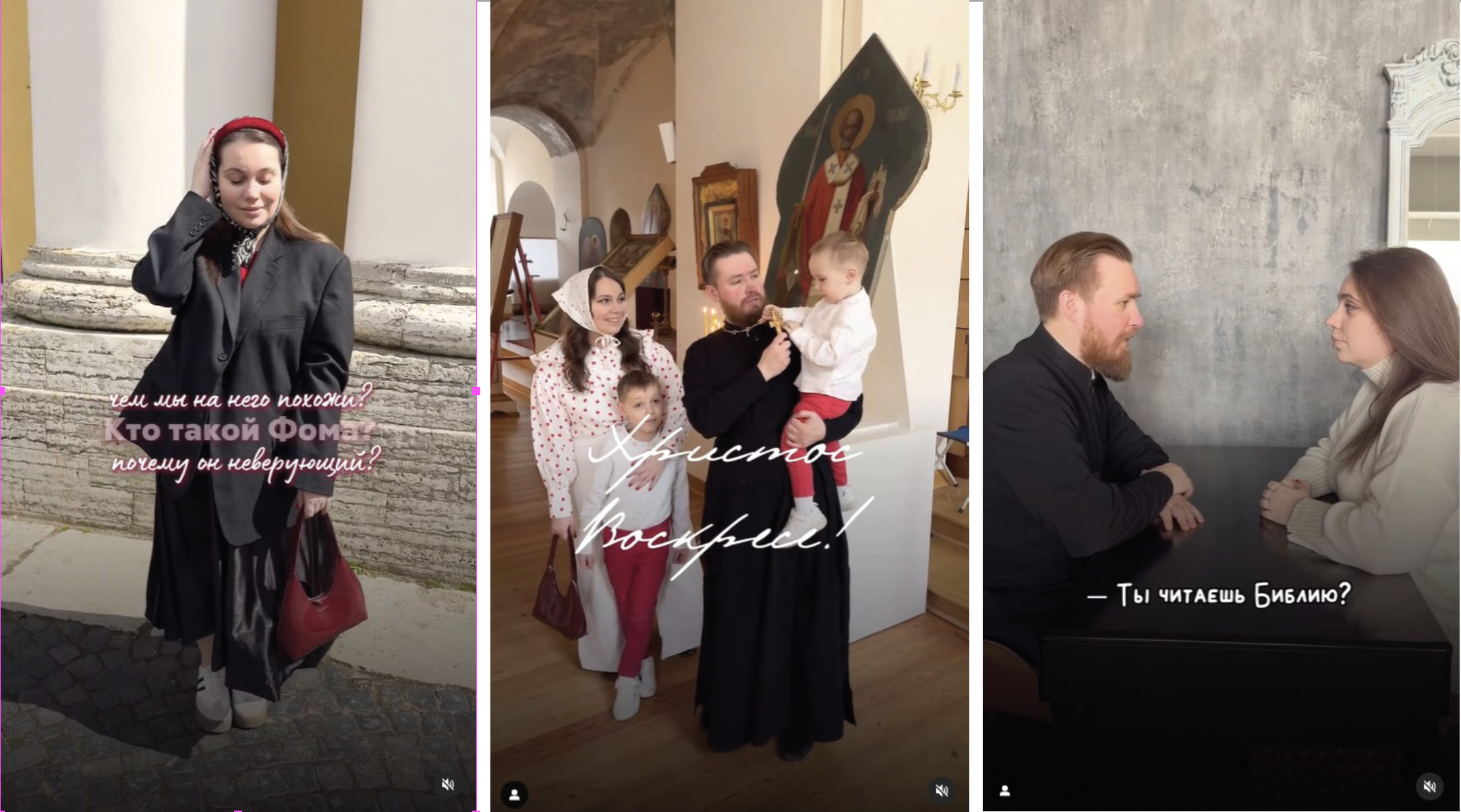 Both she and her husband (who is also one of the most popular priest bloggers on the Russian internet, according to the Association of Bloggers and Agencies) have been talking about Orthodoxy on social media since 2015. Alina still has an Instagram page with 215, 000 subscribers, but in 2021 she recognized TikTok’s promise, since “that’s where all the young people are,” and she started her own account.