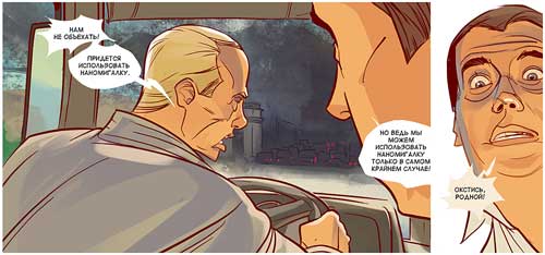 Vladimir Putin is cast as an enlightened martial arts superhero in this comic strip inaugurated in May by a group of Russian artists (with captions offered in Russian, English, German, French, German and Polish, in case you needed any hint at the real audience). Medvedev is his sidekick, and his powers include transforming himself into a bear and commanding hi-tech gadgets (his four-legged iPad locates a bomb beneath a bus). The strip is called “Super Putin, A Man Like Any Other.” At the end of the first episode, Super Putin and Medvedev face a crowd of zombies that scream oppositional demands (in addition to “BRRRAINS!”) and wear blue buckets on their heads, mocking the grass roots movement that opposes the use of the flashing blue lights (migalkas) on officials’ cars. “Migalkas are empty, they have no soul,” Sergei Kalenik, one of the strip’s creators, told Russian Life. “And Putin is man like any other, but he is torn apart by internal contradictions.”