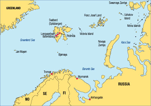 Svalbard is very much easier to visit than Franz Josef Land, and, during the short summer season, day trips to both Barentsburg and Piramida can be made by boat from the capital Longyearbyen. Scheduled flights operate several times weekly from both Oslo and Tromsø direct to Longyearbyen. The regular Russian flights to Longyearbyen from Moscow and Murmansk are charter operations run under contract to the Russian company Arktikugol. They are reserved for miners and their families and others with official business in Svalbard. They cannot be booked by tourists.
