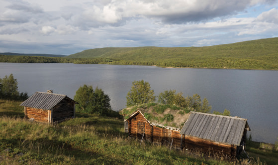 In the southern part of the area, from Lake Inari in the west to the Kola Valley[1] in the east, there are mixed forest landscapes. But at these high latitudes the forests are never dense. There are Scots pine, willows, aspen, rowan and birch. Siberian spruce and red cotton grass bring a touch of the East, a reminder that the taiga forests stretch east to the Urals and beyond. Moving north towards the coast, the dwarf trees and shrubs dwindle, shading slowly into mossy tundra. At the most exposed locations on the coast, there is almost no vegetation – merely great slabs of bare rock.