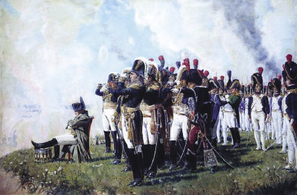 Standing still. Our cavalry was dispatched to pursue the enemy, who flees in all directions in confusion. Commander-in-Chief Prince Kutuzov arrived at our camp with a huge number of enemy flags. His face shone with happiness. He told us that between yesterday and the moment he spoke to us the enemy had lost 152 guns, while the number of prisoners is so high they have not been counted yet. There is nothing that could compare to the universal joy that overwhelmed us at that moment and caused us to shed tears. The mighty “Hurrah” cheer rang out and touched our old general.