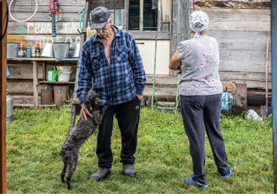 Six years ago, Roman’s parents moved from Irkutsk to Tatyana’s childhood home in Ust-Talma. Their house is 300 years old, and was built by Tatyana’s great-great-grandfather on her mother’s side. It has three adjoining rooms and a large kitchen. Endless fields stretch out behind the property.